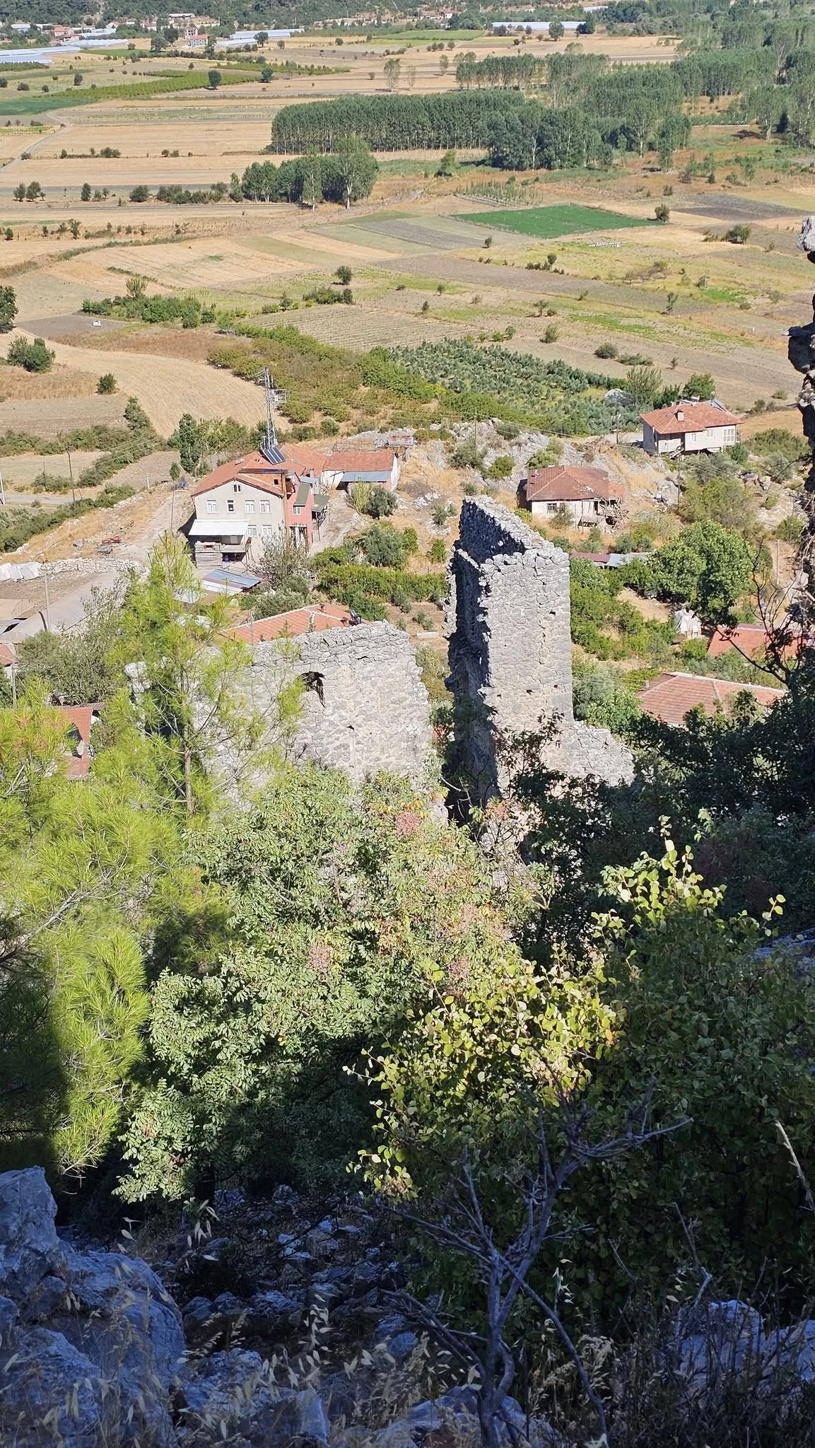 Güneşli bir günde, yüksek tepe üzerindeki kale kalıntısı tüm ihtişamıyla görünüyor. Yeşil ağaçlarla çevrili bu tarihi yapı, günümüze kadar ulaşarak sürekliliğini korumuş. Etrafındaki evler, modern yaşamın tarihi dokuyla nasıl iç içe geçtiğini gösteriyor. Erken Bizans mimarisinin önemli örneklerinden biri olan bu kale, bölgenin çok katmanlı tarihine ışık tutuyor.