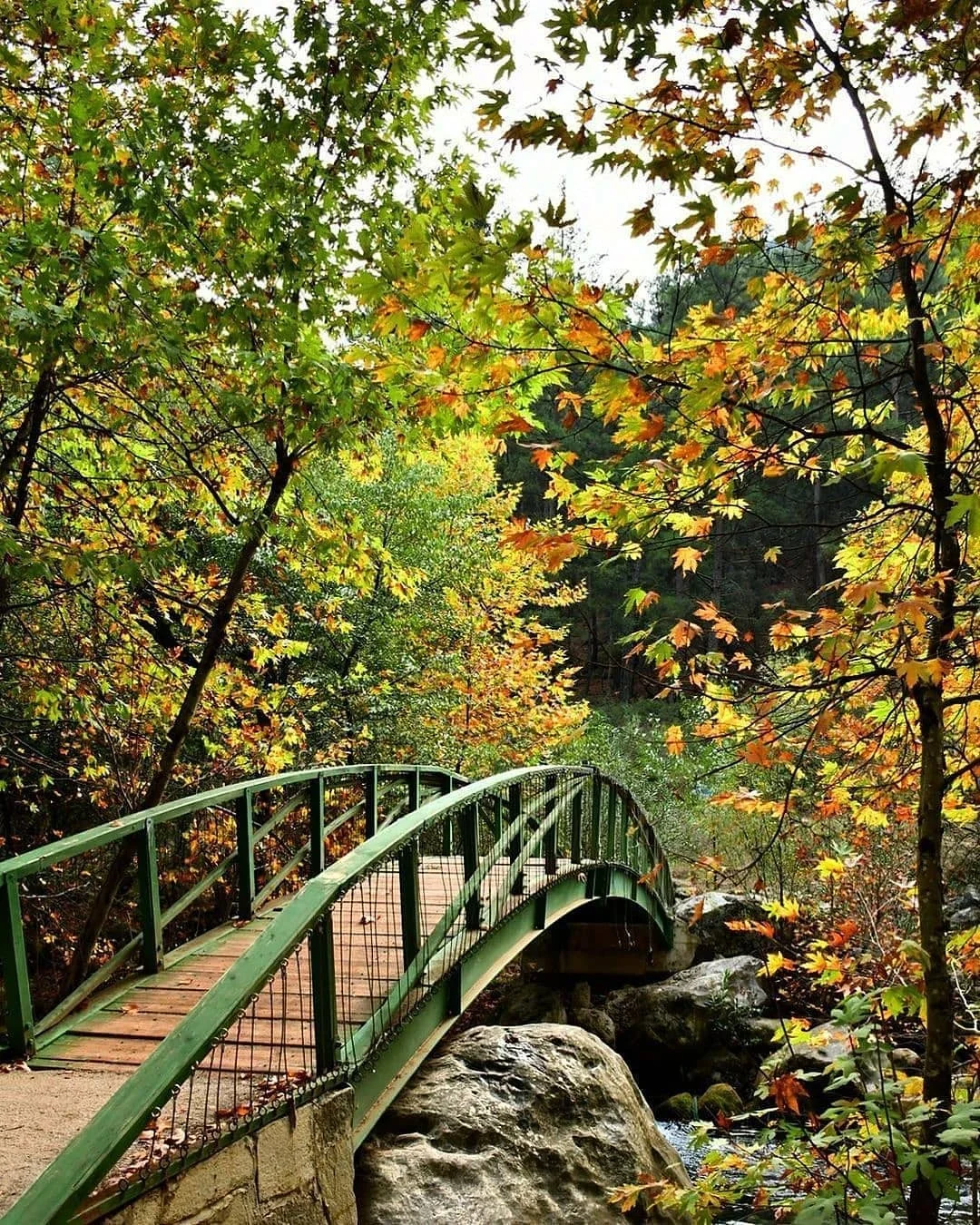 300 metrelik patikada ilerlerken karşınıza çıkan yeşil demir köprü, kanyonun en özel noktalarından birine geçiş kapısı. Bu köprüden geçerek Epiktetos'un ünlü "Hür İnsan" şiirinin kayaya işlendiği yere ulaşabiliyorsunuz. Sonbahar yapraklarının altın sarısı renkleriyle süslenmiş köprü, hem güvenli geçiş hem de muhteşem fotoğraf fırsatları sunuyor. Ahşap zemini her adımda doğayla uyum içinde olduğunuzu hissettiriyor.