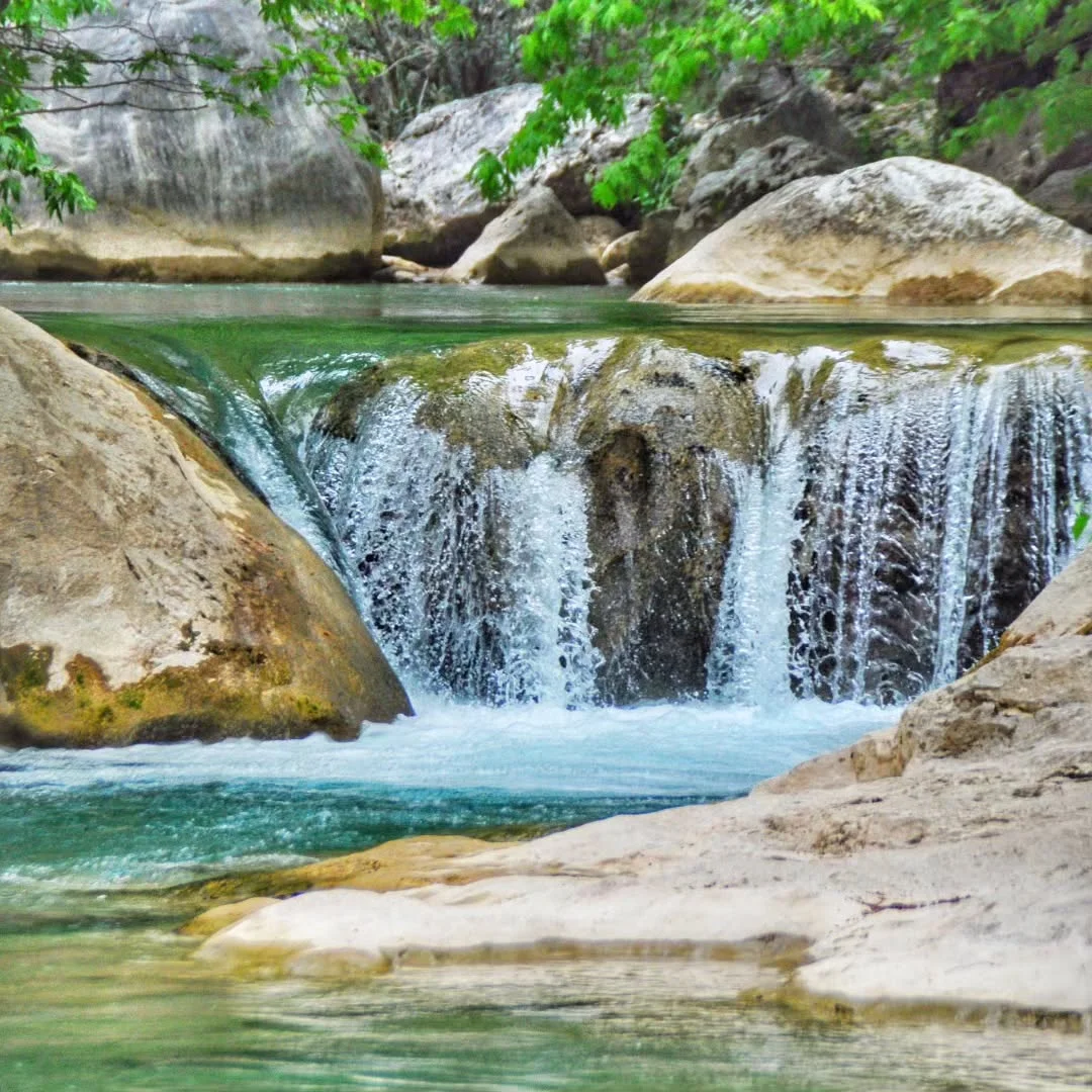Kaynaklardan dökülen sular, küçük şelaleler oluşturarak kanyona müzik katıyor. Yuvarlak taşların arasından geçen berrak su, her damlasında doğanın saflığını taşıyor. Bu doğal şelale, "Suyun Çıktığı Yer" olarak bilinen kaynağa yakın konumda yer alıyor. Suyun kaynar gibi akışı, binlerce yıldır süren doğal aşınma sürecinin canlı tanığı. Turkuaz renkteki su, güneş ışığında pırıltılar saçıyor.