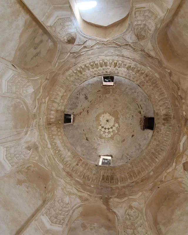 İç kubbenin tamamı beş ve altı köşeli yıldız motifleriyle süslenmiştir. Kalan izlerden anlaşılan bu geometrik desenler, İslam sanatının sembolik dilini yansıtır. Köşelerde mukarnaslı hücreler ve sivri kemerli nişler, kubbe geçişini estetik bir şekilde çözer.