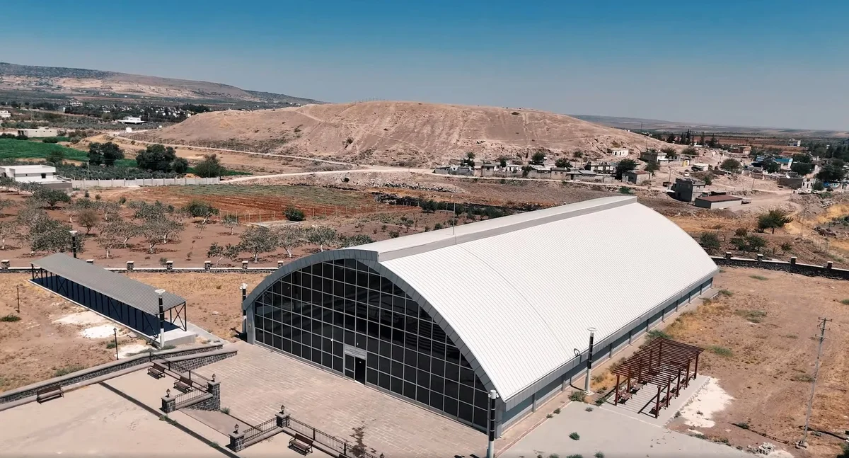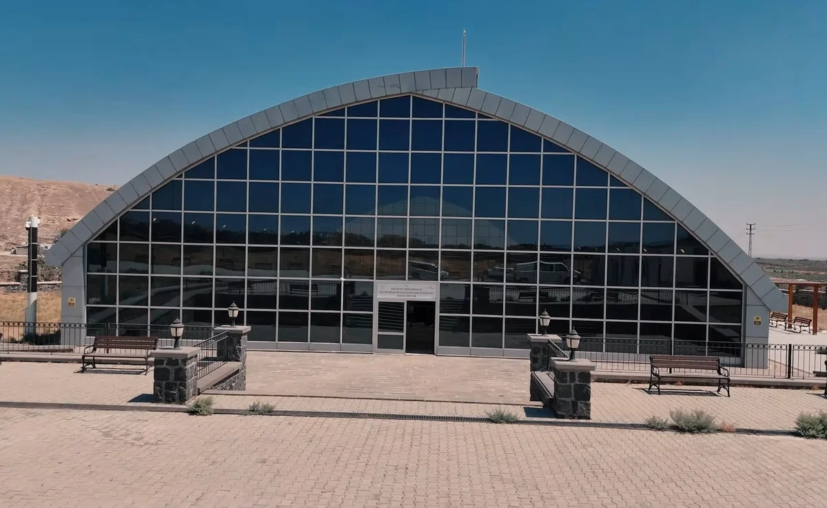 Aidesim Mozaikli Bazilikası, modern mimarisi ve açık ferah yapısıyla dini yapılar kategorisinde dikkat çekiyor. Bu resim, cam cepheli yapının mavi gökyüzü altında nasıl bir atmosfer sunduğunu gösteriyor! Kilis'te yer alan bu bazilika, tarihi ve modern unsurları bir araya getiriyor.