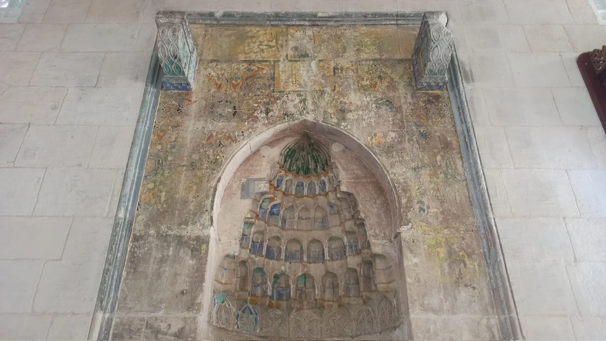 Kemer üstünde sülüs yazı ile yazılmış ayet ve hadisler, ziyaretçileri manevi bir yolculuğa davet ediyor. Ortasında Mevlevî sikkesi resmi yer alıyor ancak bu resim büyük ölçüde silinmiş durumda. Mihrap kavsarasında ise istiridye kabuğu motifi ve dört sıra mukarnas dizisi, ustaca işlenmiş taş işçiliğinin muhteşem örneklerini sunuyor. Bu detaylar, Memlük ve Osmanlı geçiş dönemi sanat anlayışının bölgedeki en önemli yansımalarından biri olarak değerlendiriliyor.