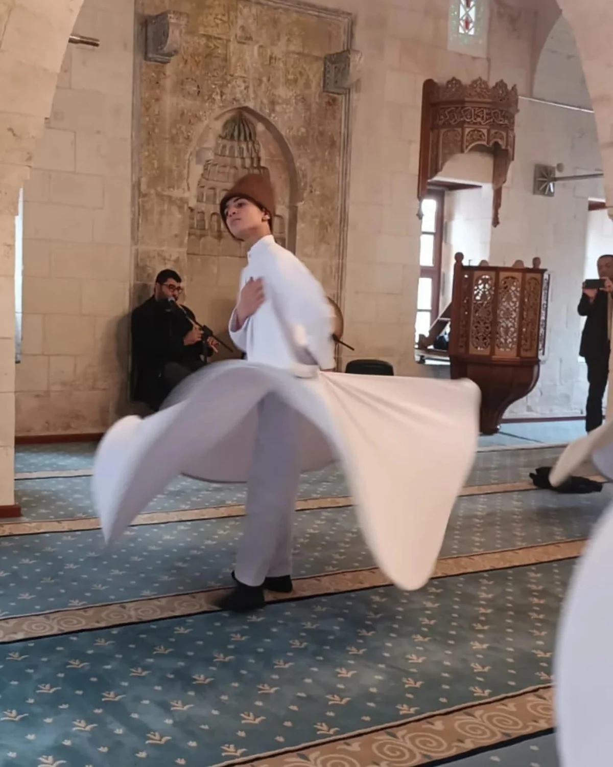 Bu resmin perspektifine göre Kilis Mevlevihanesi, Sufi kültürünün önemli temsilcilerinden biridir ve mistik bir atmosfer sunar. Beyaz elbisesiyle dönen Sufi derviş, müzik eşliğinde sema yapıyor - bu da yapının ruhani derinliğini gözler önüne seriyor. Kilis'teki bu cami, inanç turizmi için özel bir durak!