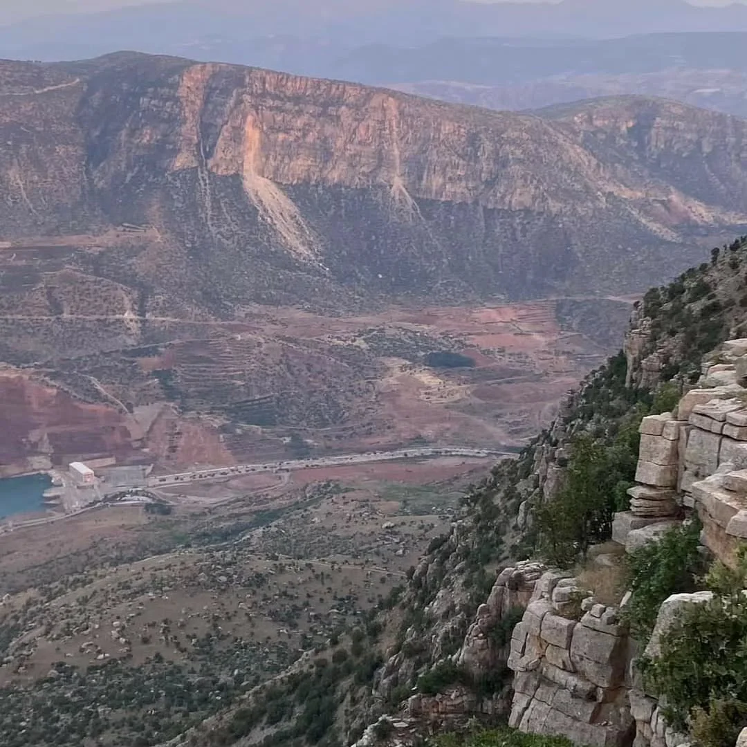 Tillo Kalesi'nin cam seyir terası, yüksek kayalıklar ve sisli dağ silüetleriyle huzur dolu bir atmosfer sunuyor. Siirt'in doğal zenginliklerini keşfetmek isteyenler için ideal bir nokta!