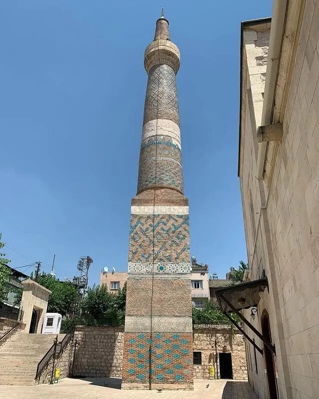 Ulu Camii'nin zarif minaresi, mavi, yeşil ve beyaz motifleriyle dikkat çekiyor - çevresindeki ağaçlar tarihi atmosferi pekiştiriyor! Siirt'in merkezinde yer alan bu yapı, inanç-kültür turizmi için önemli bir destinasyon.