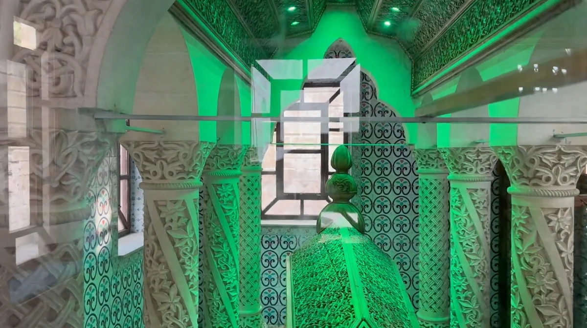 Türbenin iç mekanındaki zarif detaylar ve mistik atmosfer, ziyaretçileri adeta büyülüyor. İşlemeli sütunlar ve yeşil ışıklandırma, Veysel Karani Türbesi'ni Siirt'in dini yapıları arasında öne çıkarıyor!