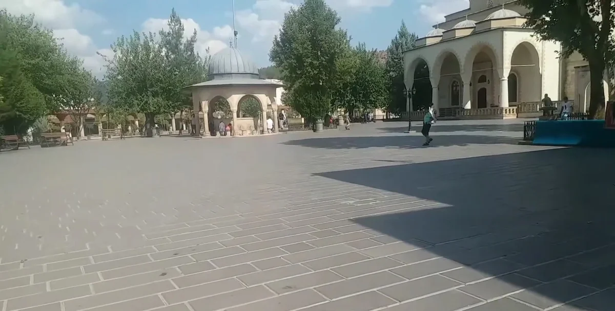 Veysel Karani Türbesi'nin bu geniş açılı görüntüsü, zarif mimarisi ve dua eden insan figürleriyle huzurlu bir ibadet alanı sunuyor. Osmanlı döneminin estetik anlayışını yansıtan bu yapıyı mutlaka ziyaret edin!